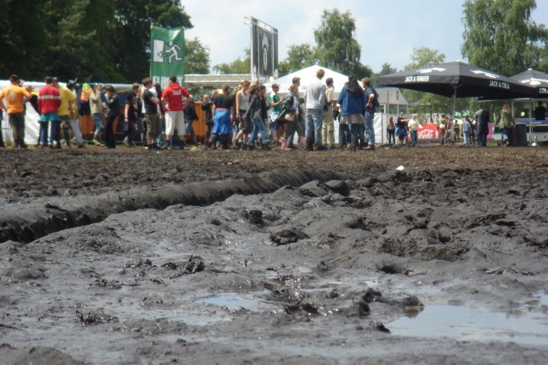 Leider blieb das Festivalgelände vor dem Unwetter, das in ganz Deutschland die Runde machte, nicht verschont und verwandelte sich der grüne Acker schnell in eine riesen Sumpflandschaft, in der auch ab und zu eine speziell duftende Briese wehte.