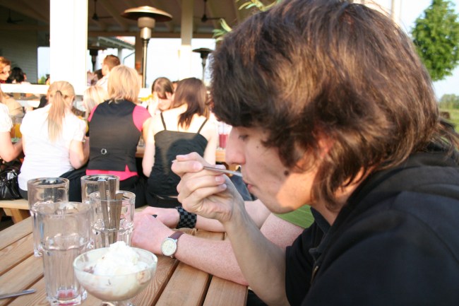 Ein Dessert passt immer rein, auch wenn man eigentlich schon bis zum Kotzen voll ist. Das passt immer! Nicht wahr, Jan? Es folgen zufriedene und glückliche Gesichter......